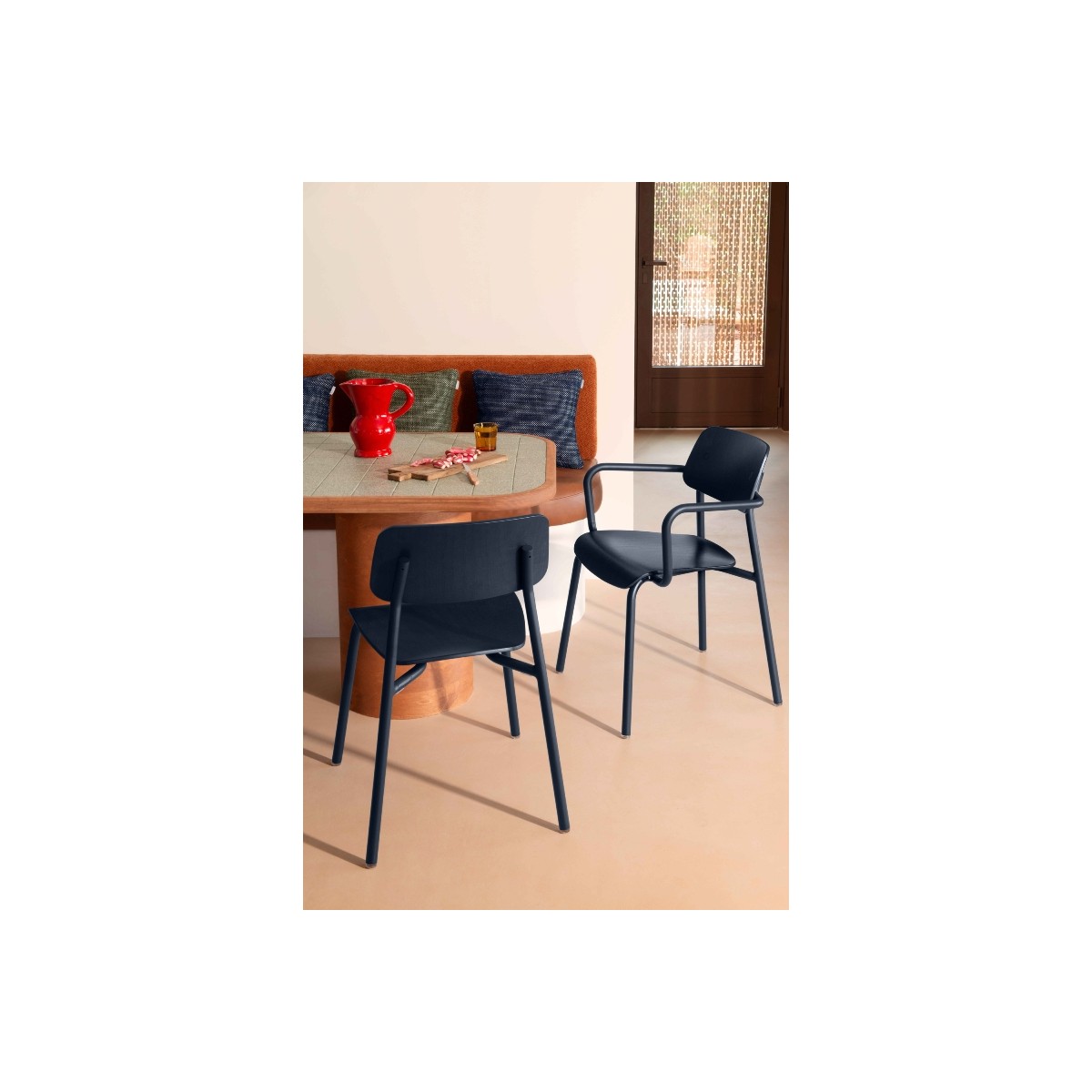Son assise en hêtre teinté révèle un veinage naturel unique à chaque pièce. Associé à une structure en aluminium, ce mariage de matières crée une harmonie subtile entre robustesse et raffinement. Une chaise aussi confortable qu’élégante, parfaite pour réchauffer un intérieur.