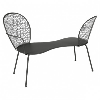 Deze bank, geïnspireerd op de beroemde dubbelzittende fauteuils tegenover elkaar, stelt u in staat te converseren zonder uw hoofd te draaien: slim! De look past perfect in de neo-romantische geest van de Lorette-collectie. Het geperforeerde patroon, dit monogram - een bloem met 4 bloemblaadjes - is de handtekening van Lorette en illustreert de deskundigheid van Fermob op het gebied van metaalbewerking.
