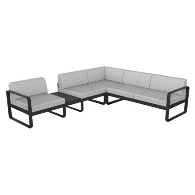 Bestaat er een aangenamere opstelling, om elkaar goed te zien en levendige discussies te voeren, dan een sofa die een hoek vormt? Deze indeling, getest en goedgekeurd door Fermob, wordt aangeboden in de samenstelling 3A, die 1 linkse module met 1 zitplaats, 1 hoekmodule met 2 zitplaatsen en 1 rechtse module met 2 zitplaatsen combineert. En niet te vergeten een ingenieuze verbindingsplank die dienst doet als bijzettafel, zodat u een aperitiefje kunt neerzetten tussen uw gasten door; of een lamp om de avond te verlengen...