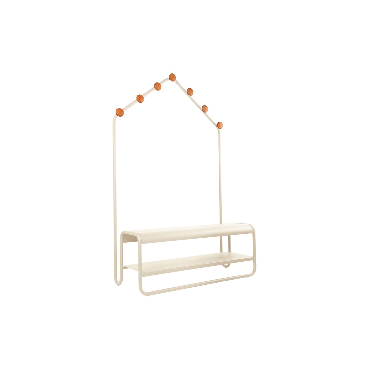 En omdat we het niet over Fermob kunnen hebben zonder het over kleur te hebben, is deze garderobe verkrijgbaar in alle tinten van ons palet, voor een meubel dat net zo gedurfd is als u. Of u nu kiest voor felle of zachtere tinten, het contrast tussen het warme hout en het metaal zorgt voor een even gastvrije als originele entree.